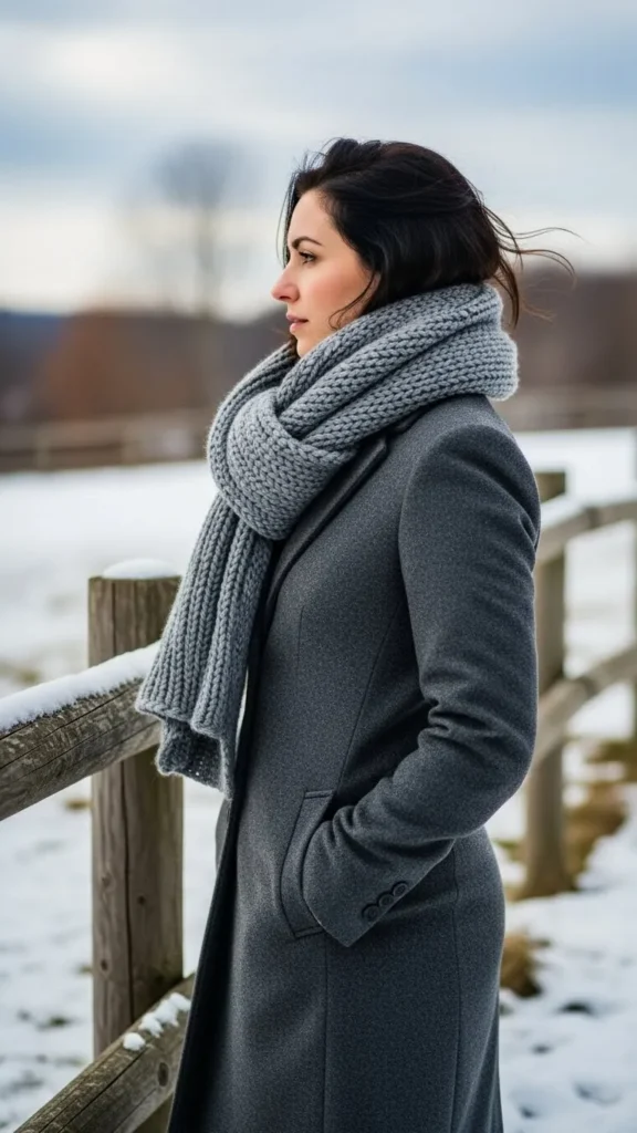 Accessories like wool scarves can transform simple outerwear. Pick a quality wool scarf in neutral colors for texture contrast. Pair with your tailored coat and jeans to add warmth and interest without additional layers or colors. Scarves are an affordable way to tweak your winter style easily.