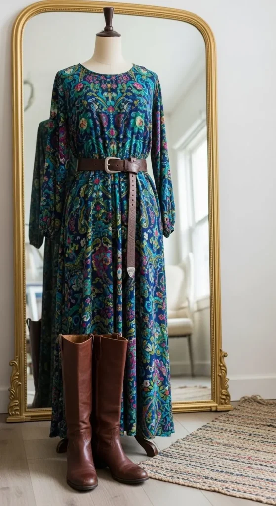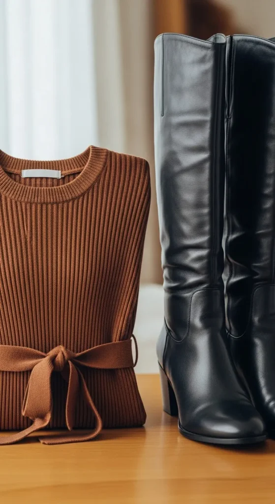 Tall boots make any short dress look stylish. They keep your legs warm too. Add a cropped jacket for balance. You can reuse old boots with fabric polish for a fresh finish.