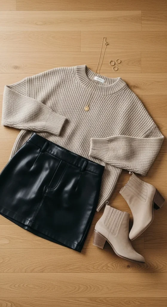 10. Leather Mini and Oversized Sweater