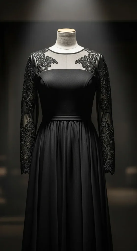 Sheer details look elegant without trying too hard. A short dress with transparent sleeves feels modern. Add statement earrings and strappy shoes. If the dress is plain, use iron-on gems around the cuffs.