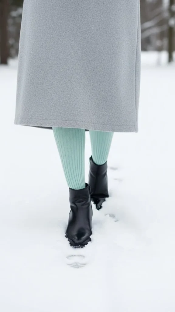 11. Soft Mint Tights Under Light Grey Dress