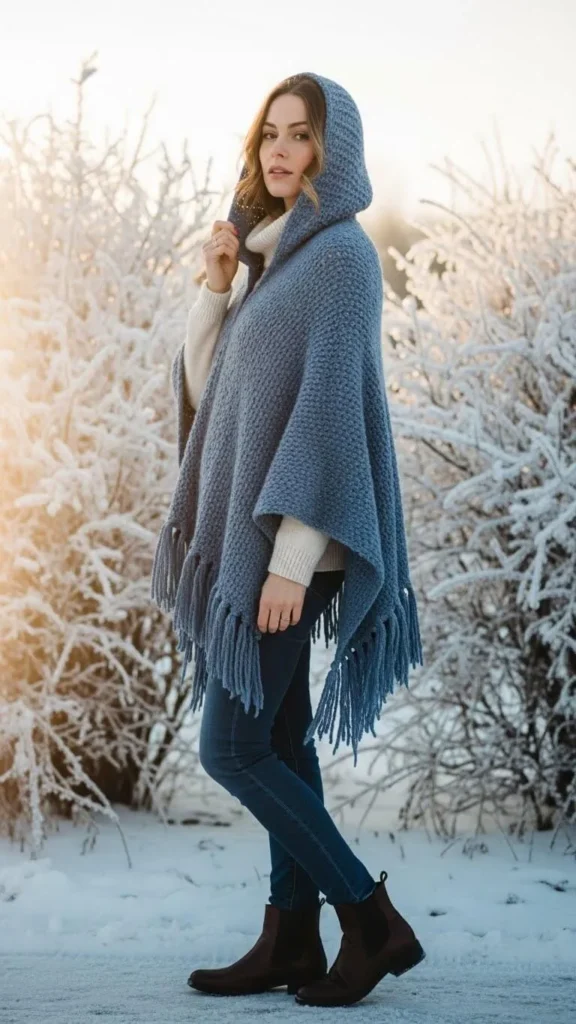 13. Misty Blue Wool Poncho with Jeans