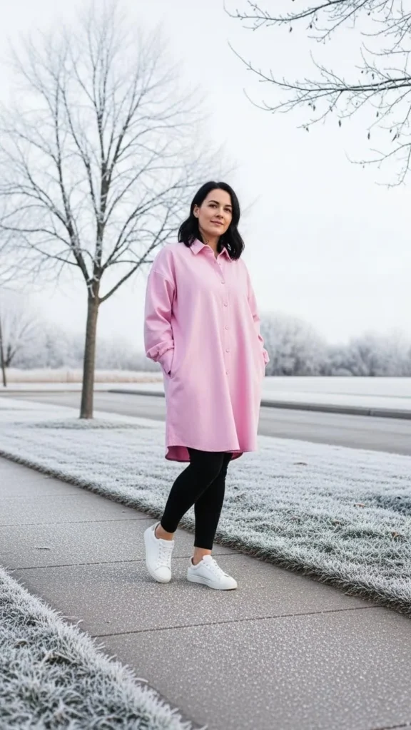 12. Baby Pink Oversized Shirt Dress with Leggings