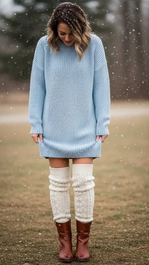 5. Pale Blue Sweater Dress and Warm Over-the-Knee Socks