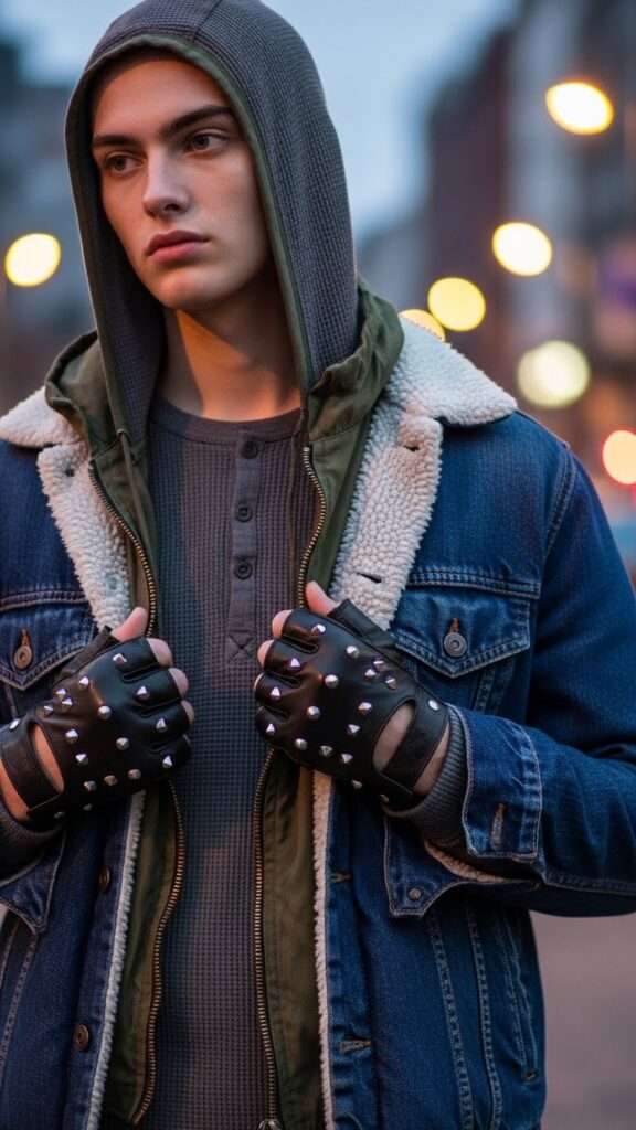 Fingerless gloves keep your hands moving freely but still warm. They’re perfect for texting or coffee runs. Layering jackets—such as a denim jacket over a hoodie—adds both warmth and style. Underneath, thermal tops increase insulation without being bulky. Budget-friendly thermals can be found in basics sections at outdoor stores or online deals. You can also create fingerless gloves by cutting old knitted gloves to size and hemming edges for durability.