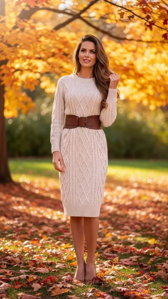 9. Cable Knit Sweater Dress with Chunky Belt