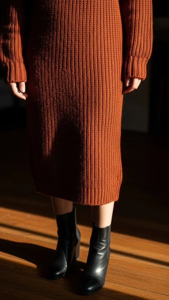 Pick a turtleneck sweater dress in an earth tone. Pair it with black or brown ankle boots. Keep accessories minimal—a simple gold necklace or stud earrings work well. This look is easy to achieve on a budget; thrift stores often have great turtleneck knits. Adding a belt can shape up the dress and add detail. It’s a timeless, warm option that works for casual outings or even office days.