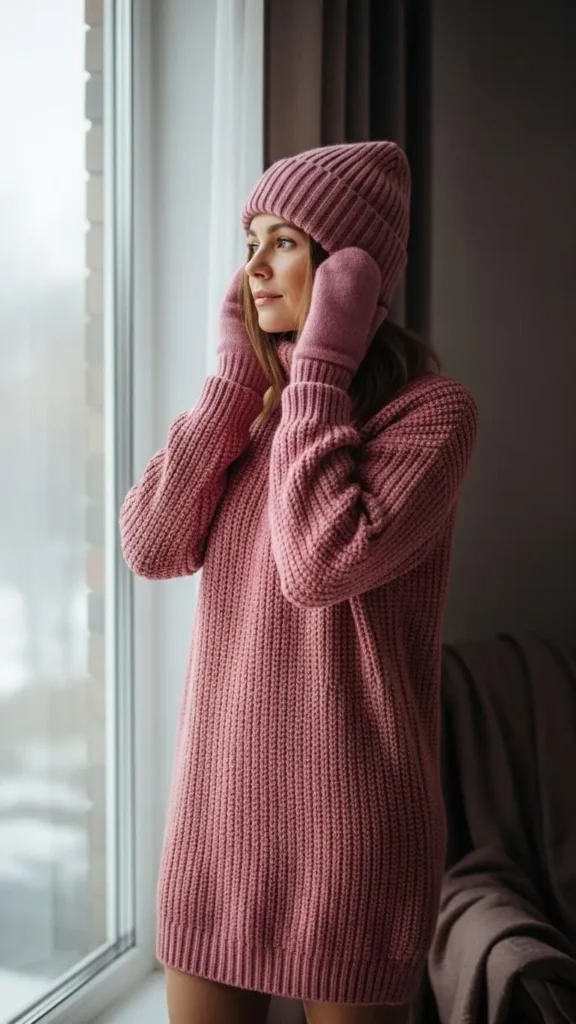 17. Sweater Dress with Chunky Knit Mittens