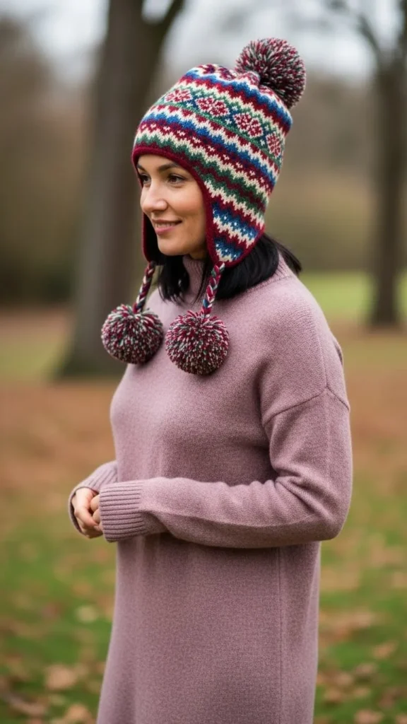 19. Sweater Dress with Patterned Wool Hat