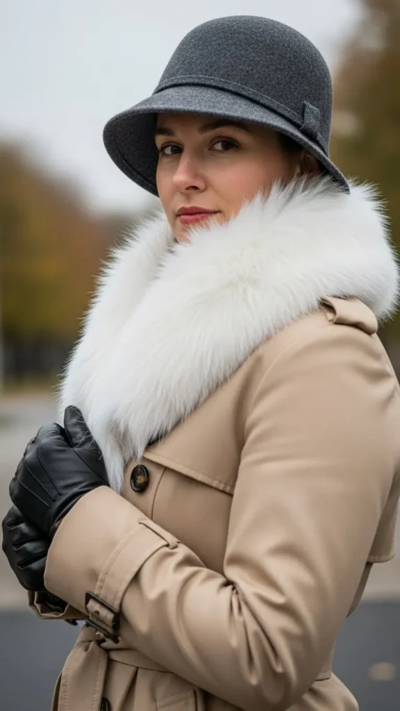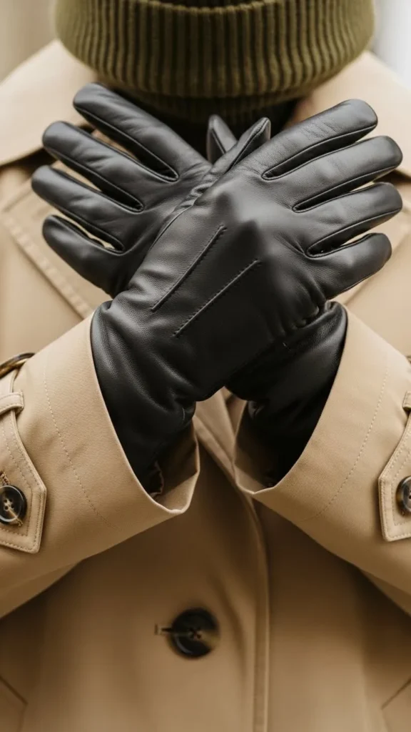 Keep it simple by fully buttoning your trench coat and adding quality accessories like leather gloves and a wool beanie. Gloves protect your hands, and beanies keep your head warm without messing up hair. You can find stylish gloves at outlet stores or secondhand shops. Wool or acrylic beanies are budget-friendly and easy to care for. This tactic focuses on practical warmth with a polished look.