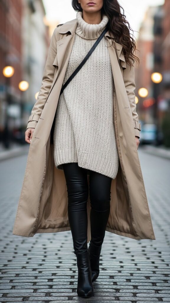 20. Trench Coat with Oversized Sweater and Leggings