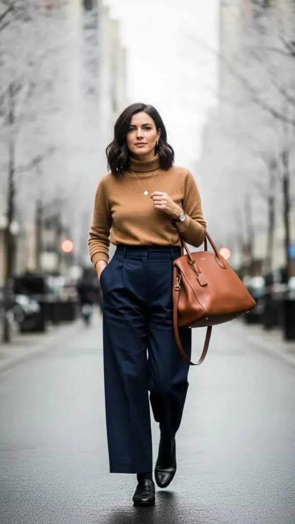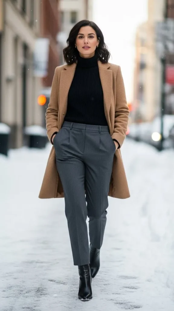 A classic turtleneck plus an overcoat is a winter staple. Add a scarf and gloves for practical warmth. Look for overcoats on sale or second-hand shops. Neutral colors mean more wardrobe pairings. Layering with accessories is budget-friendly and creates comfort and chic flair at once.
