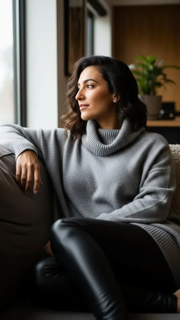 Oversized turtlenecks make a cozy statement. Pair them with sleek leggings for a balance of comfort and style. Look for budget-friendly thick cotton turtlenecks that hold their shape. Leather or faux leather leggings add texture and sophistication. Add chunky boots or sneakers, and you have an outfit perfect for errands or casual meetups.