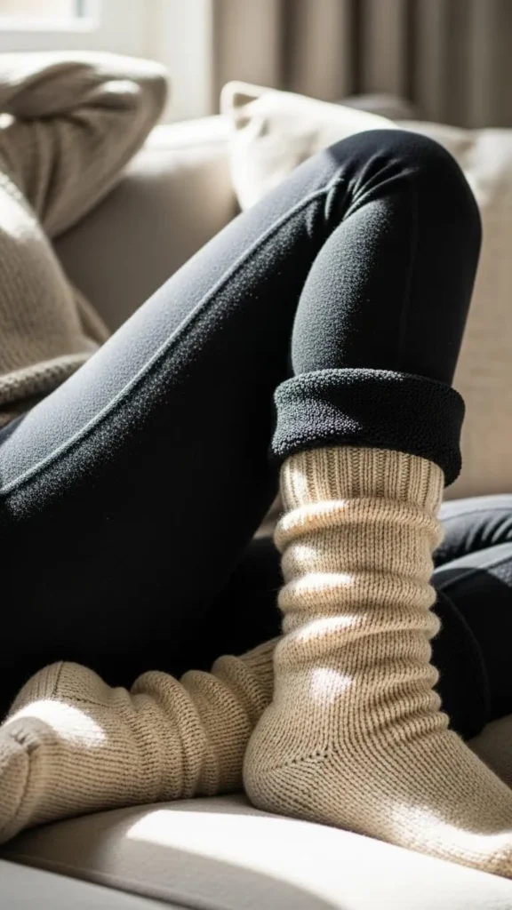 Cargo pants with fleece or flannel lining help keep legs warm. Wool socks add important heat retention for feet. Layering with boots seals out cold and moisture. This combo is ideal for outdoor activities and is often affordable, especially with sales on lined pants.