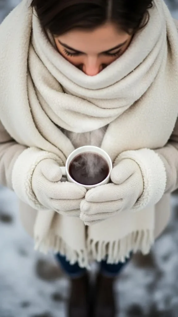 Accessories make a huge difference. A thick wool scarf wrapped snugly traps heat around your neck. Leather gloves block cold winds while still being stylish. Choose neutral colors for easy pairing. Budget tip: when shopping for gloves and scarves, opt for synthetic wool blends—you get cozy feel with better prices.