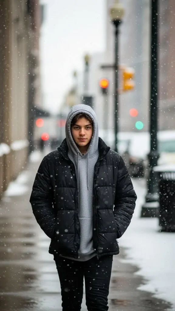 Puffer jackets are great for trapping warmth without weighing you down. Wear one over a hoodie for an extra layer of softness next to your skin. Look for puffer jackets with synthetic insulation, which is budget-friendly and water-resistant. Use the hoodie as an extra heat barrier. This layered outfit works perfectly for casual days out, and you can wear sneakers or boots.