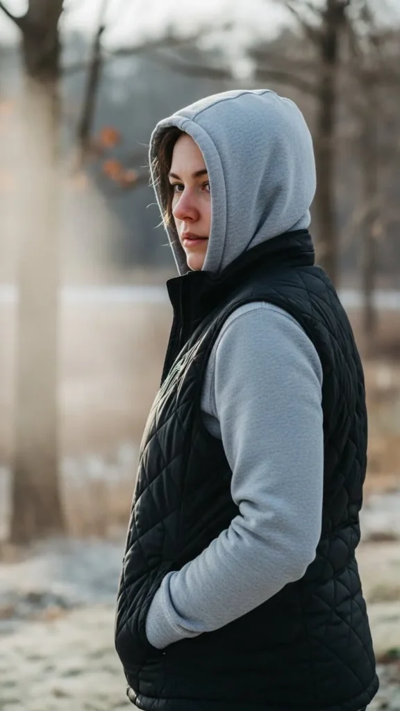 Add a quilted vest over a hoodie for extra core warmth without heavy sleeves. Vests are often more affordable than coats and easy to layer. DIY options include sewing quilted lining onto old vests. This combination works great for casual or sporty looks.