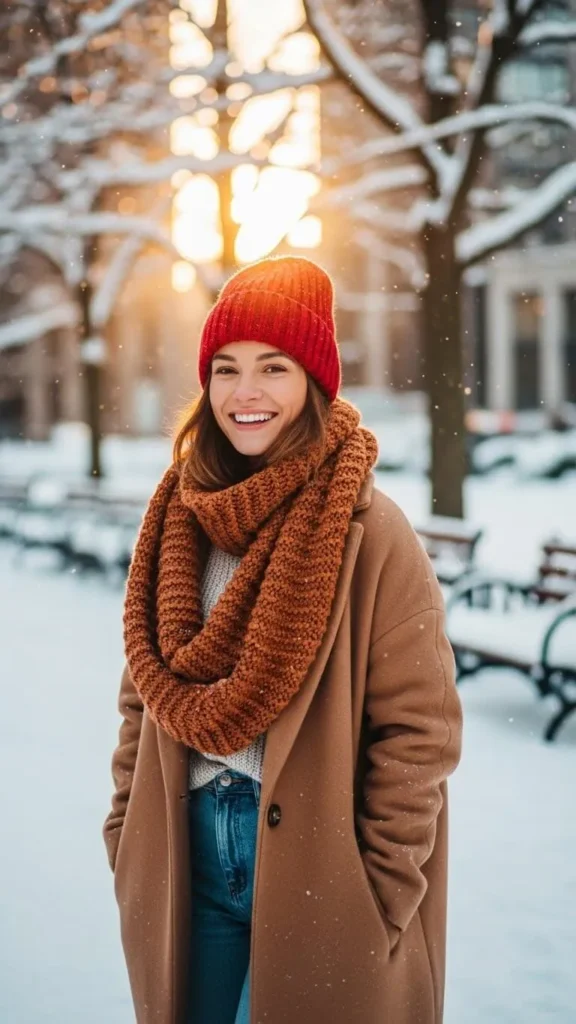 A folded cuff beanie tucks neatly under any long coat. This gives a clean and structured look that still feels approachable. Pick classic colors and look for sales at outlet stores to save. You can also knit your own simple folded cuff beanie using inexpensive yarn—there are plenty of beginner-friendly tutorials online.