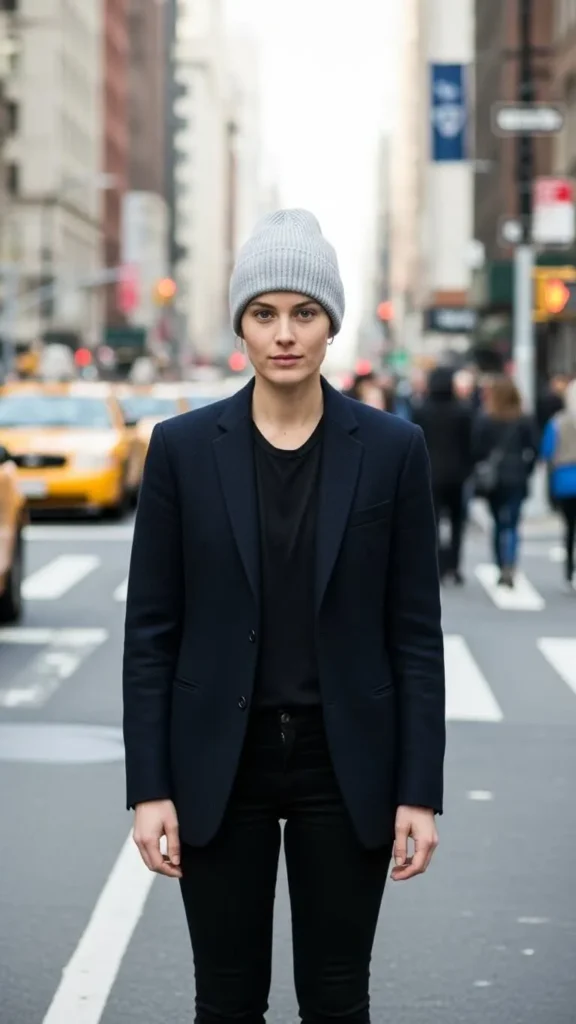 Add a folded beanie under a wool blazer for a youthful yet polished winter look. It’s practical when you want warmth without sacrificing style. Choose neutral colors that fit your blazer palette. For budget-friendly flair, try swapping beanie cuffs or swapping buttons from old hats to customize your look.