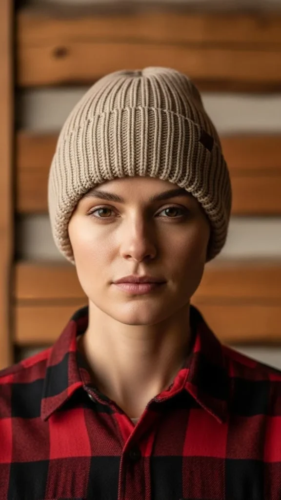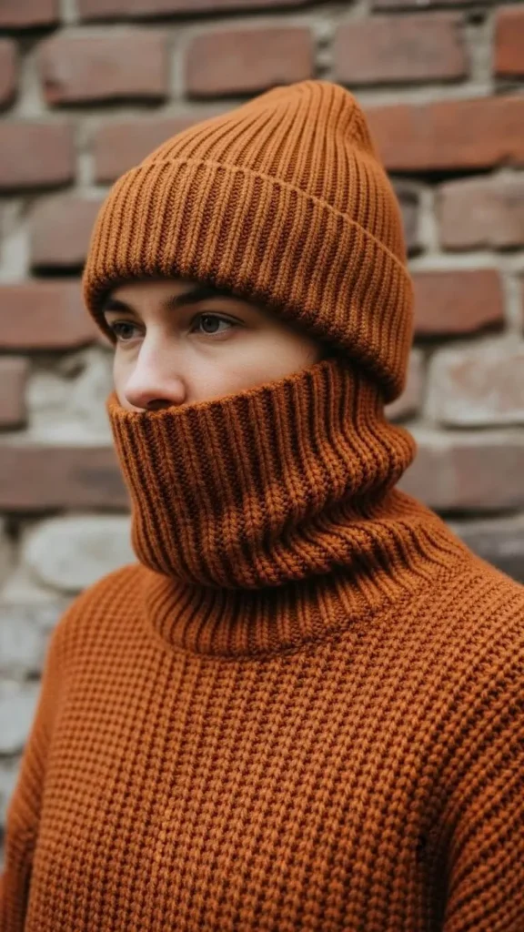 Earth tone beanies feel warm and natural paired with cozy turtleneck sweaters. This combo is easy to recreate with secondhand finds. Pick sweaters with soft, worn-in feel for extra comfort. To add subtle style to your beanie, hand-stitch a small leaf or snowflake design with thick thread.