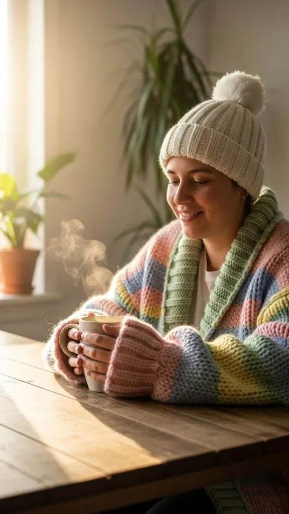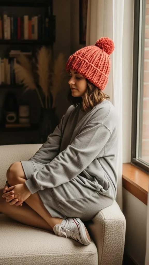 A giant sweater and a fuzzy pom-pom beanie scream cozy winter vibes. This combo feels cute and relaxed. Pick a sweater that’s soft and easy on the wallet from thrift stores or sales. Pom-pom beanies are often affordable and layered in fun colors. Try attaching a pom-pom from an old hat to a plain beanie for a simple DIY upgrade.