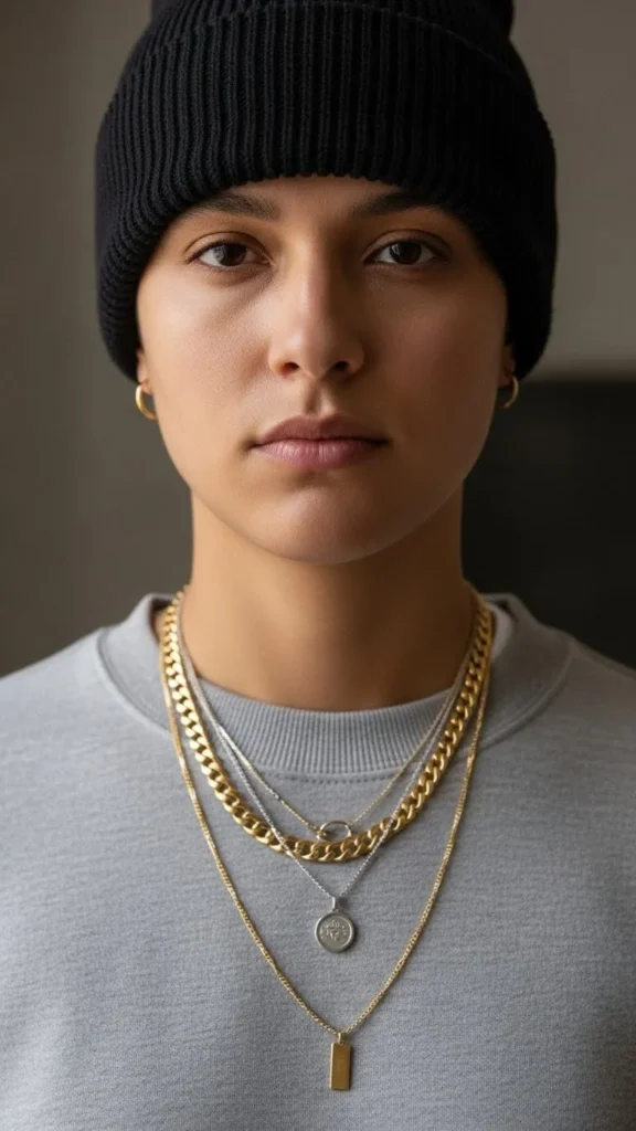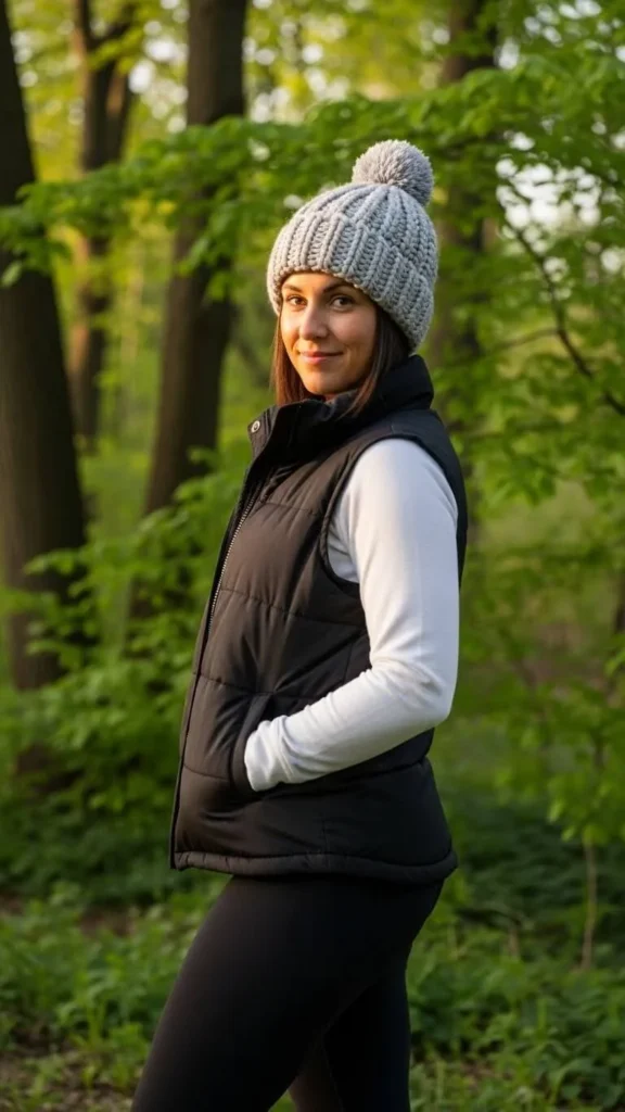 A chunky knit beanie is a great match for a puffer vest and leggings combo. It’s light but warm enough for layering days. Shopping thrift shops for vests can help keep costs down. To add a DIY element, try sewing a small tag or custom patch onto your beanie’s cuff to make it your own.