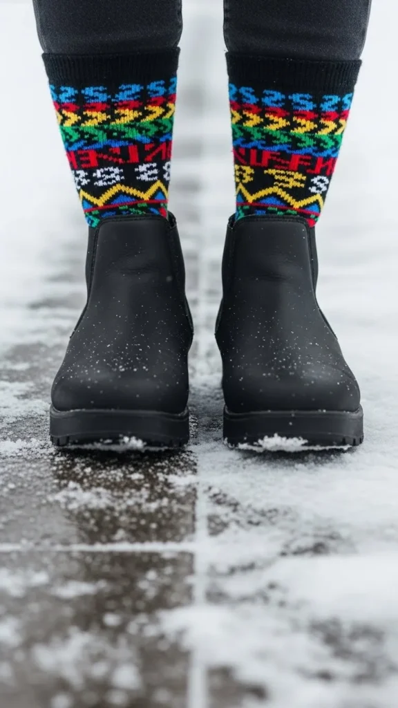 Socks are an easy way to add personality to winter boots outfits. Choose colorful or patterned wool socks that peek just above the boots. This detail adds playfulness and warmth. Pair with cuffed jeans or leggings to showcase the socks. You can knit your own socks as a budget-friendly DIY or find inexpensive ones at discount stores. This small step spices up simple outfits without extra layers.