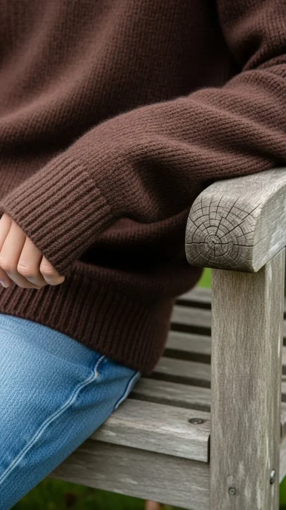 If you can splurge a bit, a chocolate brown cashmere sweater is softness personified. Pair with plain straight leg jeans to balance textures and colors. For more budget-friendly versions, look for cashmere blends or wool mixes. Take care of knitwear by hand washing or air drying to extend life, avoiding unnecessary replacements.