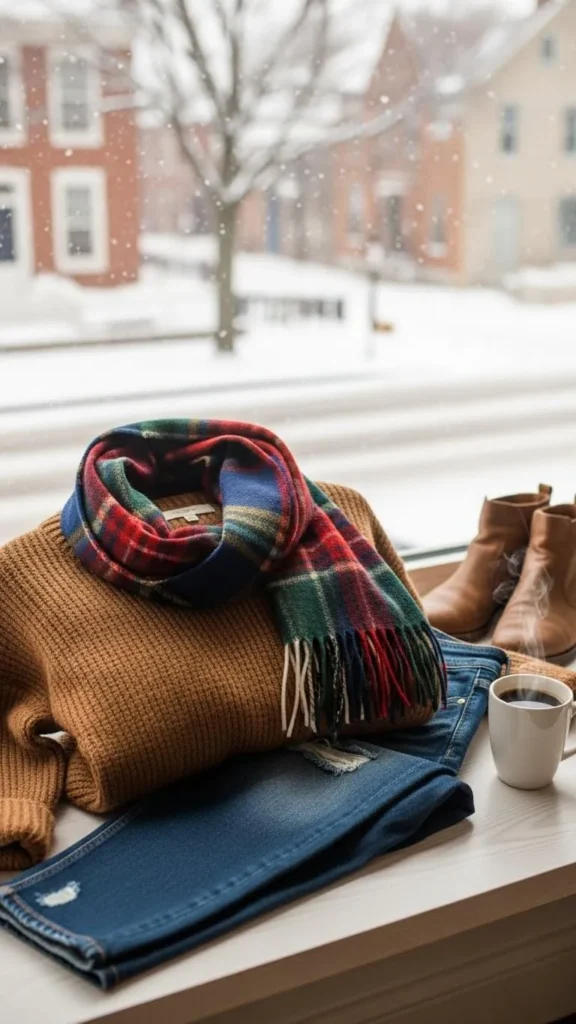 Sometimes simple wins. A soft coffee brown sweater with a plaid scarf and jeans serves as a great everyday outfit. Look for lightweight sweaters that can layer nicely. Scarves add personality and warmth. Shopping seasonal sales makes it easy to snag these affordable basics.