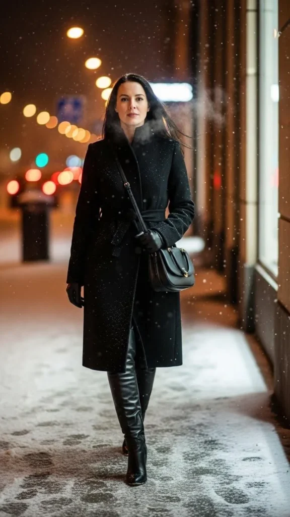 A long black coat never fails on a winter date. It feels put-together even if you’re wearing a simple top underneath. Add knee-high boots for warmth and a balanced silhouette. Go with leather or faux leather for a sharper look. You don’t need new pieces—this pairing works with anything from a sweater dress to jeans. If you want to save money, thrift a wool coat for a fraction of the price. Add a bold lip or layered necklace to give the outfit a touch of personality. Keep the rest simple and let the clean lines do the work.