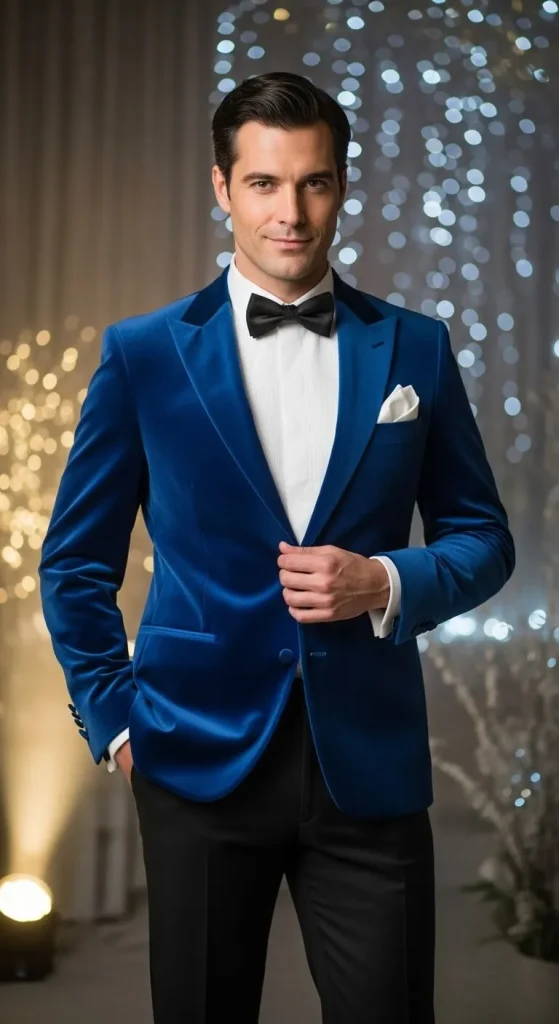 Velvet suits are luxurious yet comfortable. Pair a royal blue jacket with black trousers for balance. Use a satin tie for polish. Iron-on patches or subtle embroidery can make it uniquely yours.