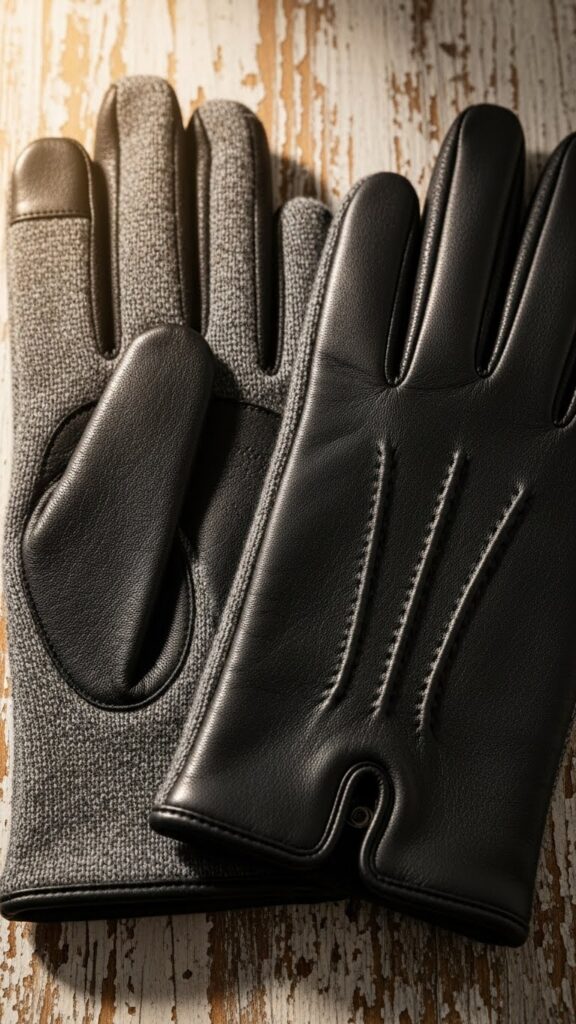 Gloves mixing wool with leather details combine warmth and grip. They work well with casual or semi-formal outfits. These gloves are often available at mid-range prices but keep an eye out for online deals. If you have plain gloves, sewing on leather patches on palms is an easy DIY upgrade that adds both style and durability.
