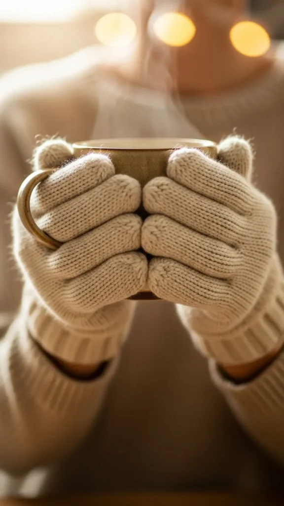 Mittens maximize warmth and go perfectly with big scarves. This combo creates a snug winter vibe. Choose mittens in warm fabrics like wool or fleece. Mittens are easy to knit yourself if you have beginner skills—a great way to save money. For store-bought versions, look for sales and check local markets for handmade mittens at affordable prices.