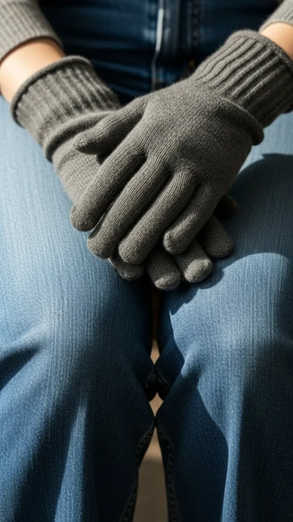 Winter calls for warm, knit gloves. Match them with a chunky sweater or cardigan for a casual cozy outfit. Look for gloves with cable knit or simple ribbed patterns. Thrift stores often have great finds for knitwear, including gloves. If you want a customized touch, add small pom-poms or knit your own gloves using easy patterns online. This look works great for relaxed weekends or casual outings.