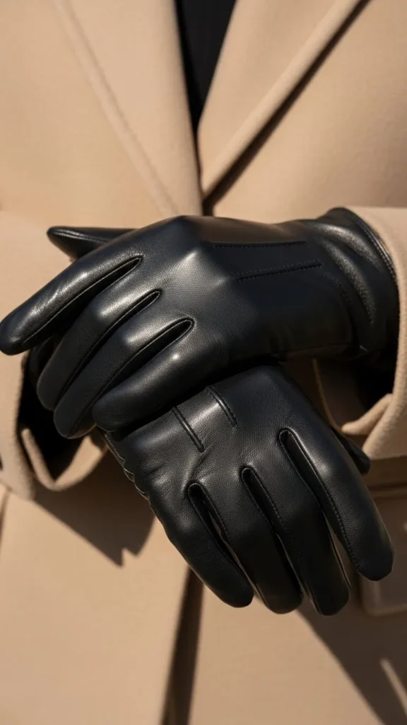 Classic leather gloves pair perfectly with a tailored coat. Choose gloves with a slim fit to keep the look clean and sharp. Black, brown, or deep burgundy tones work well. This combo is ideal for work or smart casual days. For a budget option, try faux leather gloves from discount stores—they look just as polished. Don’t forget simple DIY hacks like using leather conditioner to keep gloves soft and shiny.