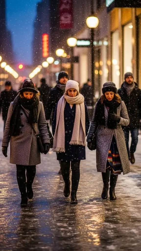 A mock neck sweater keeps the neck cozy without bulk. Pair with high-waist jeans to hold warmth in the core area. Chunky sneakers add street style without slipping on ice if you add grip pads. Affordable sweaters can be layered under coats or jackets for flexible warmth.