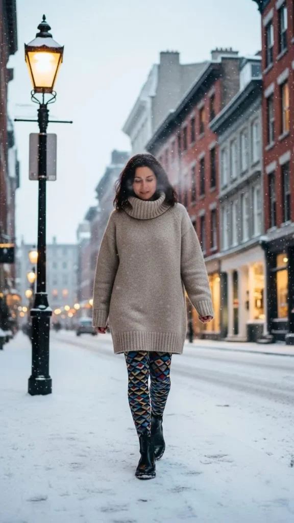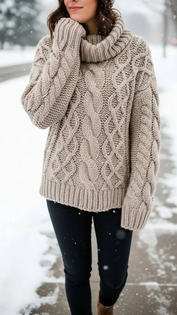 Start with a chunky knit sweater. It traps heat and looks cozy. Pair it with skinny jeans for a balanced silhouette. Add ankle boots – comfy and sturdy on icy streets. To stay budget-friendly, hit thrift stores for oversized knits or repurpose an old sweater by sewing on patches or adding fabric paint. This simple combo lets you mix comfort with casual chic easily.