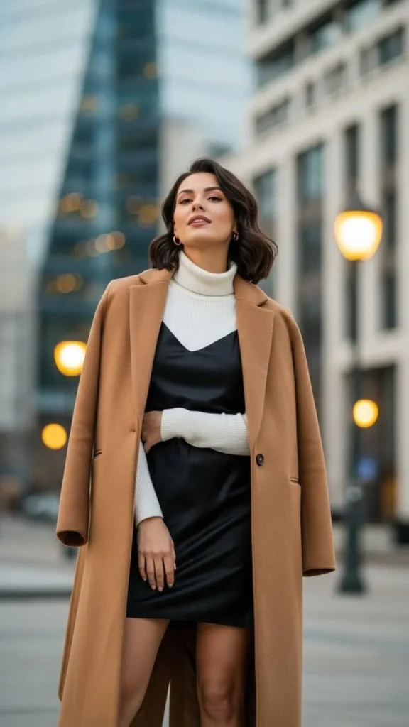 3. Turtleneck Layered Under a Slip Dress with Wool Coat