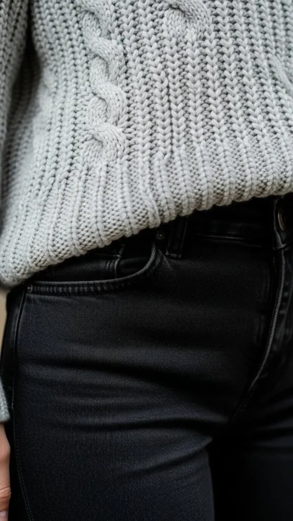 A simple grey knit sweater pairs perfectly with black jeans. The cozy texture adds warmth without extra bulk. Look for sweaters with a bit of stretch for comfort. Keep the jeans basic—no wash, just plain black. This combo is a great base. Add neutral sneakers or boots, and you have an easy outfit for running errands or casual meet-ups. If you want a little flair, fold your cuffs or layer a plain white tee underneath for subtle contrast.
