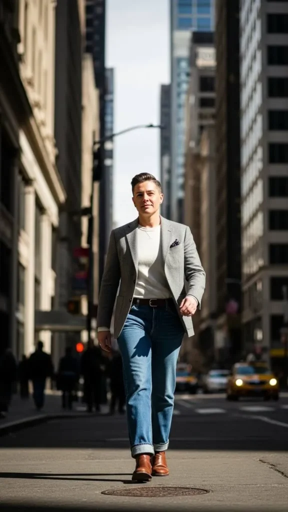 11. Grey Wool Blazer with Jeans