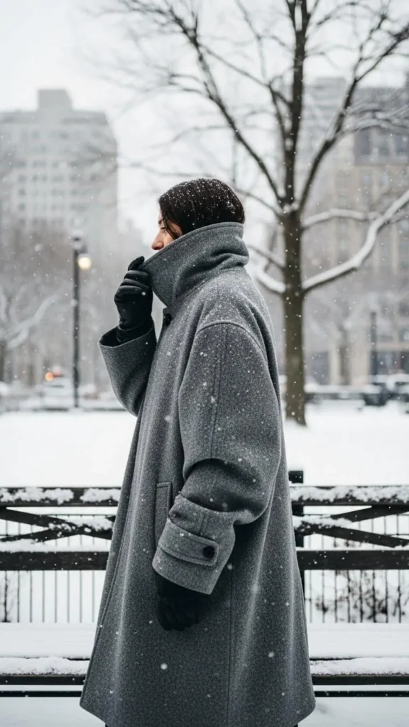 2. Oversized Grey Coat Over Casual Layers
