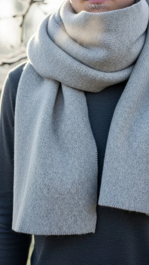 A wool scarf in any shade of grey adds instant warmth and style. Pair it with a monochrome grey sweater to keep things minimal yet interesting. Using different textures—like a chunky scarf against a smooth sweater—adds dimension without color. Scarves are often easy to find on sale or secondhand. This combo works well alone or layered under coats. Flip your scarf to cover your mouth on cold days for function meets style.