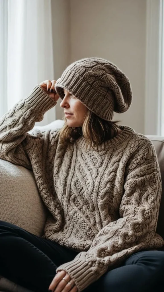 A soft cashmere slouchy hat feels luxurious without needing a flashy outfit. Pair it with a minimalist coat for subtle warmth and style. Watch out for secondhand cashmere pieces or blends that fit budgets better. This look is fuss-free and elegant.