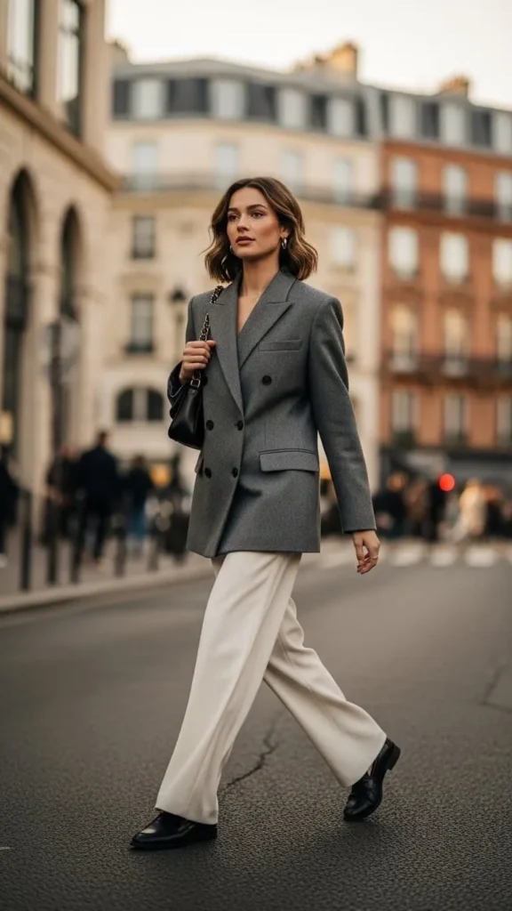 13. Double-Breasted Blazer Coat with Wide Leg Pants