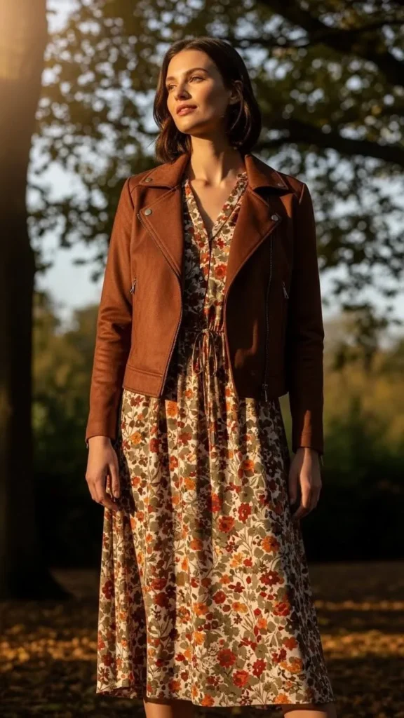 The soft texture of faux suede pairs beautifully with feminine floral dresses during colder months. Throw on a jacket to add warmth without losing your outfit’s charm. Midi dresses can be worn with tights and boots. Try layered necklaces or a wide-brim hat for extra personality. Faux suede jackets come in many affordable styles, and can even be spiced up with fringe or buttons.
