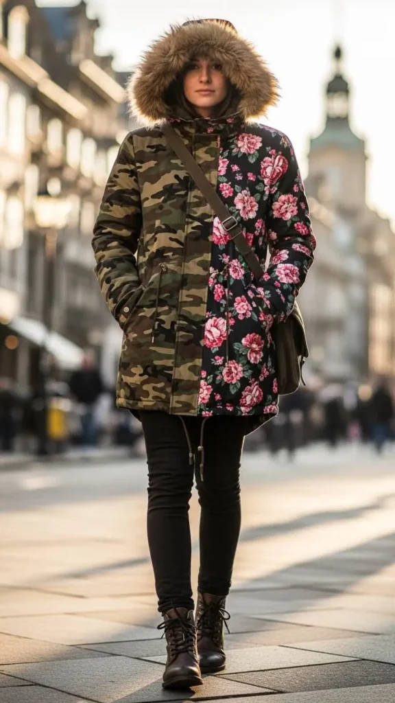 Printed parkas bring personality to cold looks. Pair with black jeans to keep focus on the coat, finished with ankle boots for neat footwork. Choosing prints like camouflage or florals keeps things fresh and original. Try shopping clearance items or resale apps for unique pieces. Pair with simple tops to avoid competing patterns.
