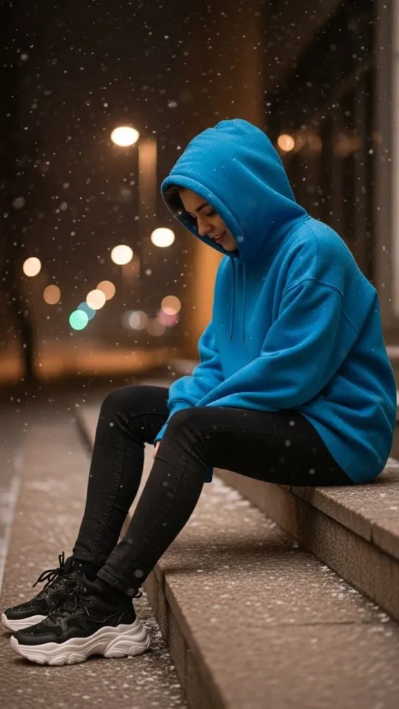Go for simplicity with black jeans and an oversized hoodie for the most laid-back winter days. The hoodie doubles as a warm layer. Snug black jeans keep your legs warm and contrast nicely with bright hoodies. Pair with sneakers or casual boots for running errands or lounging. You can DIY trendy hoodie designs with fabric paint to keep it unique and low-cost.