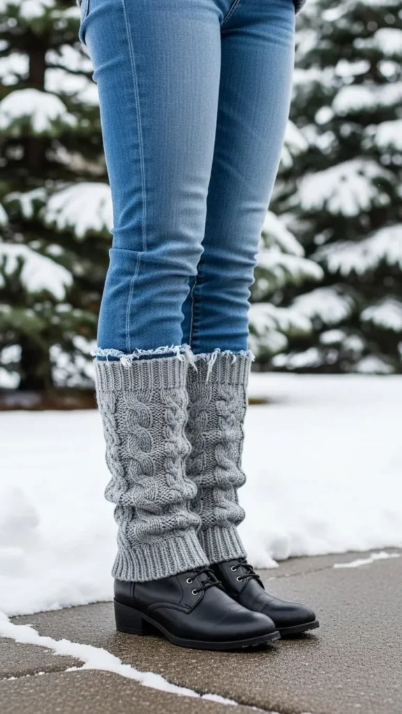 For a retro winter look, wear cropped jeans with leg warmers scrunched above your ankle boots. This combo keeps your calves cozy and adds fun layers without extra bulk. Leg warmers are cheap and can be DIYed from old sweaters by cutting and sewing into tubes. This style is playful and eye-catching for casual days.