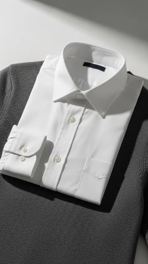 Layering a button-down under a crewneck sweater creates a neat, polished look. Let the collar and cuffs peek out. Pair with jeans, trousers, or skirts with tights. Wool-blend crewnecks work best for comfortable layering and better shape retention.