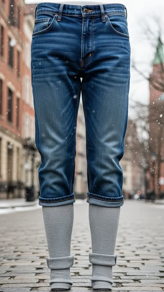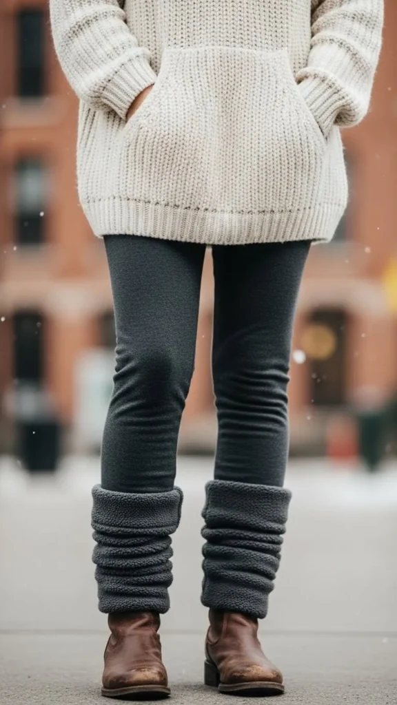 Fleece-lined leggings feel warm while staying slim. Add an oversized sweater for cosy comfort that still looks neat. A longer sweater gives good coverage, and knee-high boots trap heat along your legs. Add a scarf on windy days. Many stores offer fleece leggings at low prices during mid-season sales.